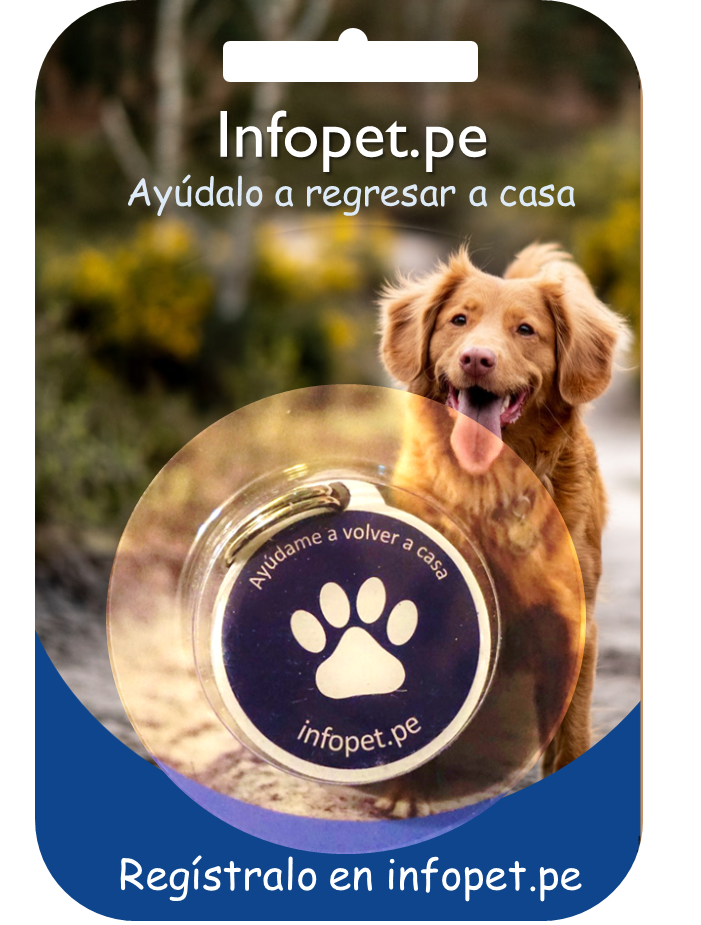 Es un plaquita con un código único impreso. Registre en su cuenta de infopet.pe el codigo y los datos de su mascota. Cada cuenta tiene los datos de contacto en caso su mascota se extravíe y sea encontrada.